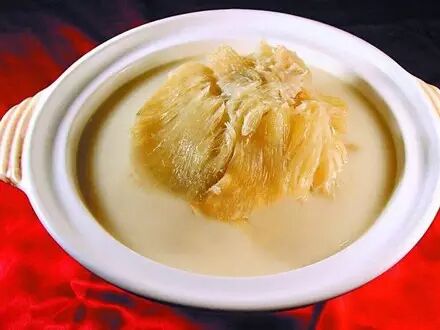 有专人当着你的面煮的,最少煮了15分钟,一上,趁热饮,正正正,汤是那种煲到有点起浆的感觉,浓郁的鸡汤在口腔里面转,鱼翅挺大的,配合汤一起,太正点了~喝完一碗汤,暖暖的。