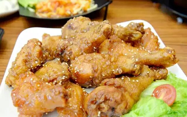 这家韩式炸鸡店几乎天天都要出现在朋友圈里!真的是在《来自星星的你》中千颂伊手中吃的那款炸鸡!!炸鸡现点现炸,有全鸡、鸡翅、鸡腿,还可以做出7种味道!除了招牌的香甜和原味,微辣、重辣,还有女神最爱芝士口味和口臭不怕的蒜香味~不知道这几天是否还是排队吗!!