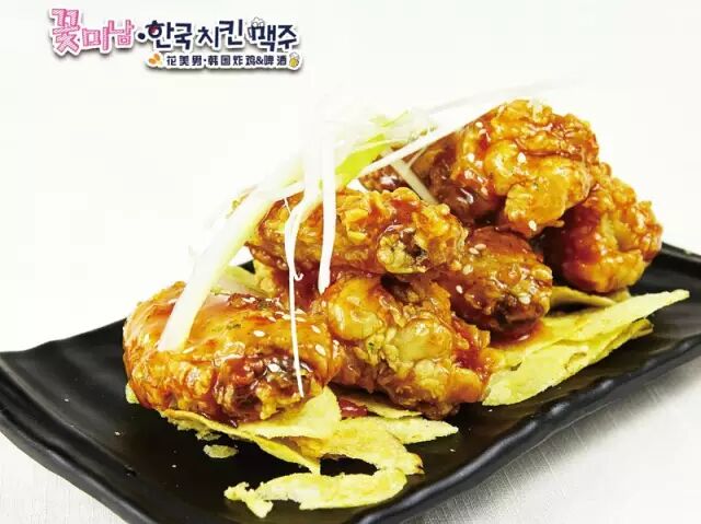 花美男韩国炸鸡啤酒可是号称老板就是花美男呢!(至于是否真的是花美男,看每个人的看法啦!)鸡肉是现炸的,要等待5-15分钟!不过现吃的热腾腾的炸鸡下还搭配着乐事薯片,风味更佳哟!逛街累了,来吃个炸鸡,真不错!缺点就是在商场内,半夜想要吃可就没有咯~