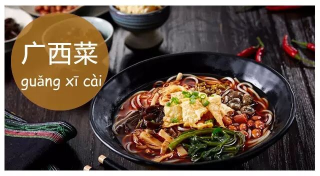 广西自古以来官宦商旅云集,因而广西菜(桂菜)的饮食习惯兼收并蓄了粤、川、湘、浙、赣、闽等地方菜肴的特点,广西菜味道鲜香、微辣酸甜,非常开胃,这一特点在广西的传统名点螺蛳粉中有集中的体现。